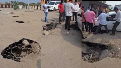 ग्रामस्थ व भाविकांच्या सोशल मीडियावर संतप्त प्रतिक्रिया | यमाईदेवी मंदिरासमोर रस्त्यावर भाविकाची गाडी गेली खड्ड्यात