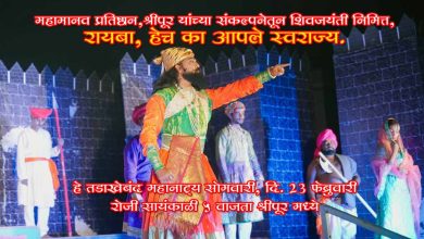 शिवजयंतीनिमित्त श्रीपूरात ‘रायबा, हेच का आपले स्वराज्य’ महानाट्याचा थाट महामानव प्रतिष्ठानचा स्तुत्य उपक्रम; 40×50 फुटांच्या भव्य स्टेजवर शिवचरित्र महामानव प्रतिष्ठान,…