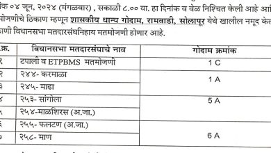 प्रशासन मतमोजणीसाठी सज्ज mat mojani 4.6.2024 https://inmaharashtra.co.in/wp-content/uploads/2024/06/mat-mojani-4.6.2024.pdf माढा लोकसभा मतदारसंघाच्या उमेदवारांची मतमोजणी वेळ, दिनांक व ठिकाण असे असणार