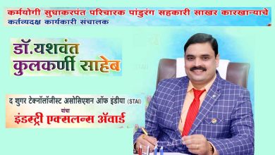 डॉ.यशवंत कुलकर्णी यांना STAI चा इंडस्ट्री एक्सलन्स अवॉर्ड जाहीर | श्रीपूर | पांडुरंग साखर कारखान्याचा सन्मान! | पांडुरंग साखर कारखान्याचा…