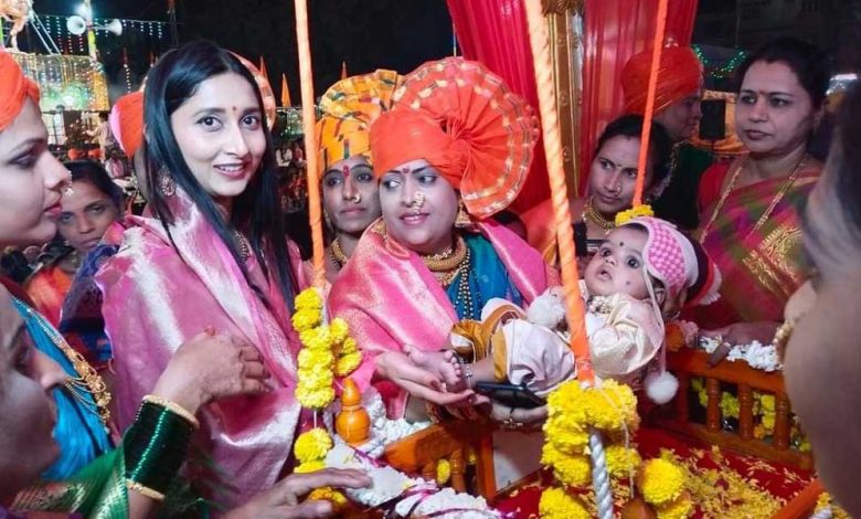 या बाळाचे नाव “शिवाजी” असे ठेवण्यात आले. सर्व महिला भगिनींना पान सुपारी, घुगऱ्या व लाडूचे देखील वाटप करण्यात आले. छत्रपती शिवरायांचे जीवन चरित्र माहिती करून देणारे पुस्तक देखील सर्वांना भेट देण्यात आले. यावेळी हजारोच्या संख्येने महिला भगिनी, शिवप्रेमी, ग्रामस्थ उपस्थित होते.