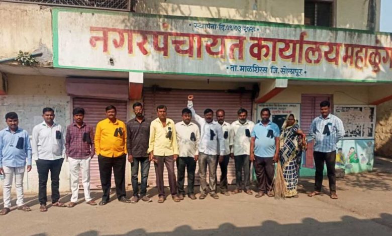 महाळुंग-श्रीपूर नगरपंचायत कर्मचाऱ्यांचा जुन्या पेन्शन मागणीला व संपाला पाठिंबा