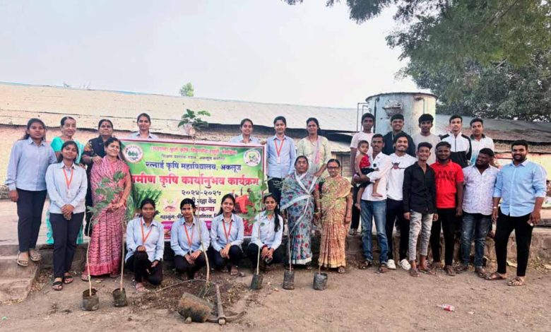 "झाडे लावा दारोदारी, समृद्धी होईल घरोघरी" हा संदेश देत रत्नाईच्या कृषीकन्यांनी केले वृक्षारोपण