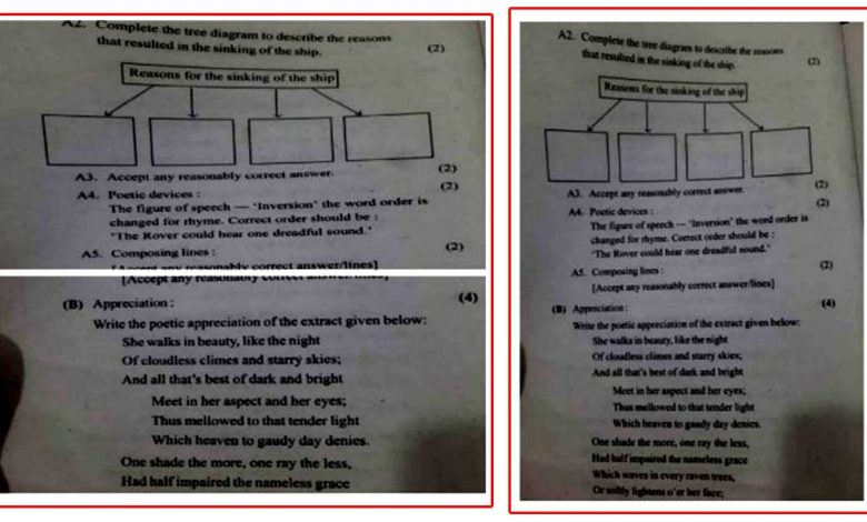 इंग्रजी पेपर मधील प्रश्न क्रमांक 3 इंग्रजी कवितेववर आधारित आहे. पान नंबर 10, प्रश्न क्रमांक 3 , उप प्रश्न, A3 2 मार्क तपासणाऱ्याला सूचना दिली आहेत. प्रश्न ऐवजी A4 (2 मार्क) थेट उत्तर देण्यात आले आहे. कवितेवर आधारित प्रश्नचे हे उत्तर आहे.