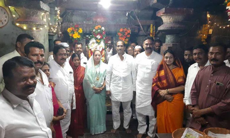 यमाईदेवी मंदिर महाळुंग मध्ये खासदार आमदारांच्या शुभहस्ते झाली महापूजा.