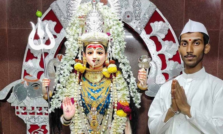 श्री शिवशक्ती नवरात्र महोत्सव मंडळाच्या दुर्गादेवीची नित्य पूजा करतो कॉलेजमध्ये शिकणारा युवक