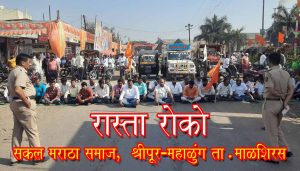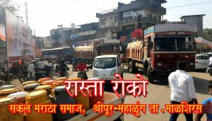 श्रीपूर मध्ये रास्ता रोको | सकल मराठा समाज महाळुंग-श्रीपूर कडून रास्ता रोको