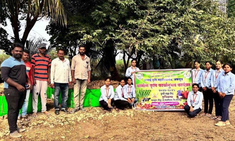 महाळुंग येथे ‘ कृषिकन्यांनी’ दाखवले गांडूळ खत निर्मितीचे प्रात्यक्षिक (Demonstration of vermicomposting production by ‘Krishikanyas’ at Mahalung)