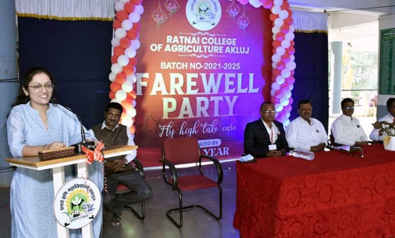 अकलूज येथील रत्नाई कृषी महाविद्यालयातील चतुर्थ वर्षातील विद्यार्थ्यांचा निरोप समारंभ संपन्न