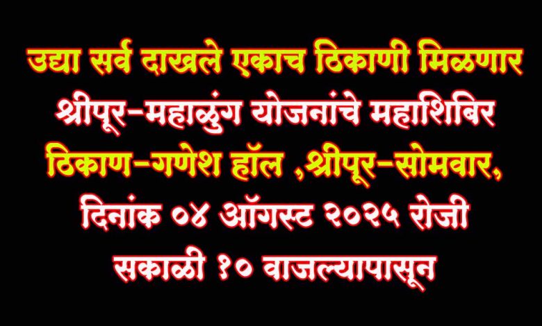 ठिकाण-गणेश हॉल ,श्रीपूर | सोमवार, दिनांक ०४ ऑगस्ट २०२५ रोजी सकाळी १० वाजल्यापासून