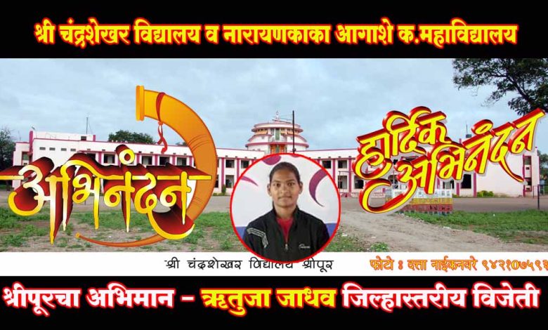 श्रीपूर (ता. माळशिरस) येथील श्री चंद्रशेखर विद्यालय व नारायणकाका आगाशे कनिष्ठ महाविद्यालयातील अकरावी इयत्तेत शिकणारी विद्यार्थिनी कुमारी ऋतुजा शहाजी जाधव हिने जिल्हास्तरीय वजन उचलणे (वेटलिफ्टिंग) स्पर्धेत प्रथम क्रमांक पटकावला आहे.