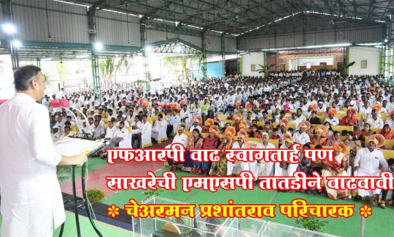अध्यक्षीय भाषण करताना चेअरमन प्रशांत परिचारक म्हणाले की, केंद्र शासनाने चालू गाळपास ऊसाची एफआरपी ३५५० रुपये केली आहे, ही अत्यंत स्वागतार्ह बाब आहे. यामुळे देशभरातील कोट्यवधी शेतकऱ्यांना दिलासा मिळणार आहे. मात्र, गेल्या काही वर्षांपासून वाढत्या उत्पादन खर्चामुळे साखर उद्योग अडचणीत सापडला आहे. त्यामुळे आर्थिक संकटातून मार्ग काढण्यासाठी सरकारने साखरेची किमान आधारभूत किंमत (एमएसपी) वाढवणे तातडीने गरजेचे आहे.