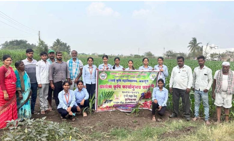 यावेळी दिपाली माने, प्रतिक्षा वाघमारे, साक्षी सरडे, शितल आंधळे , रोशनी पवार, नेहा धापटे, वैष्णवी पाटील, वैष्णवी जगताप, साक्षी माळी व सिद्धी लोंढे या कृषी कन्या उपस्थित होत्या. तसेच गोरख सावंत, भरत काळे, प्रितम मांडवे, डॉ.संजय लाटे हे शेतकरी बांधव उपस्थित होते.