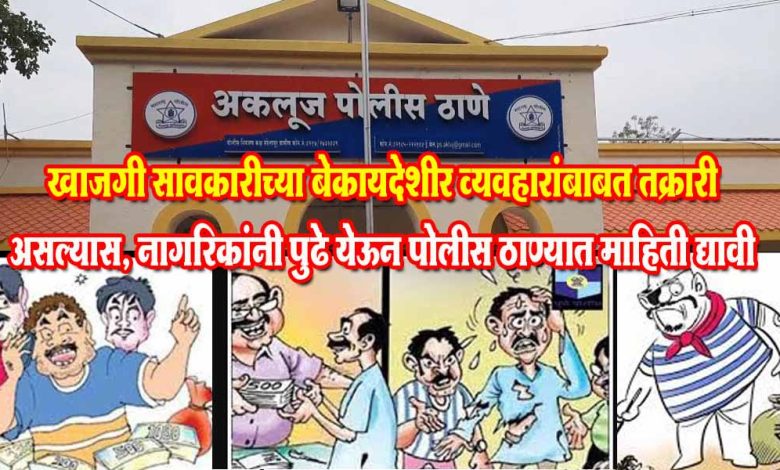 तसेच खाजगी सावकारीच्या बेकायदेशीर व्यवहारांबाबत तक्रारी असल्यास, नागरिकांनी पुढे येऊन पोलीस ठाण्यात माहिती द्यावी, असे आवाहनही अकलुज पोलिसांकडून करण्यात आले आहे.