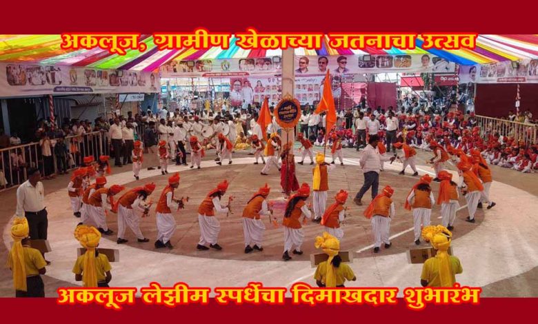अकलूजमध्ये २० व्या भव्य लेझीम स्पर्धेचा दिमाखदार शुभारंभ