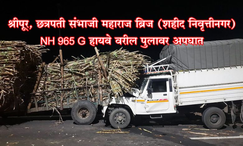 श्रीपूर : नॅशनल हायवे ९६५G वर श्रीपूर येथील छत्रपती संभाजी महाराज ब्रिज (शहीद निवृत्ती नगर) वरील पुलावर शनिवारी रात्री साडे आठ ते नऊच्या सुमारास भीषण अपघात झाला. ऊस वाहतूक करणाऱ्या ट्रॅक्टरच्या मागील बाजूस असलेल्या बजाट ट्रॉलीला बोलोरो पिकपने पाठीमागून जोरदार धडक दिली.