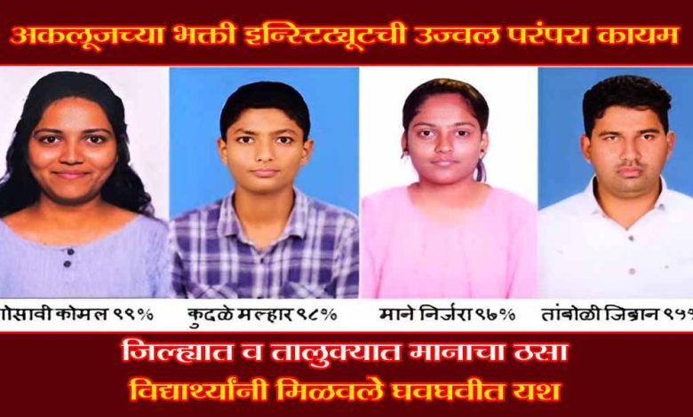 अकलूज (ता. माळशिरस) –येथील भक्ती कॉम्प्युटर टायपिंग इन्स्टिट्यूट ने पुन्हा एकदा आपल्या उत्कृष्ट मार्गदर्शनाची छाप उमटवत जीसीसी-टीबीसी टायपिंग परीक्षेत दैदिप्यमान यश संपादन केले आहे. महाराष्ट्र राज्य परीक्षा परिषद, पुणे यांच्या वतीने जानेवारी २०२६ मध्ये घेण्यात आलेल्या शासकीय जीसीसी-टीबीसी परीक्षेचा निकाल नुकताच जाहीर झाला असून या परीक्षेत संस्थेच्या विद्यार्थ्यांनी उल्लेखनीय यश मिळवत अकलूजचे नाव जिल्हाभर उज्ज्वल केले आहे.