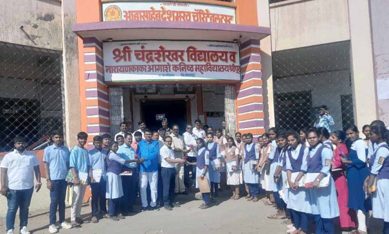 श्रीपूर मध्ये बारावीच्या परीक्षा केंद्रावरती विद्यार्थ्यांचे गुलाब पुष्प देऊन स्वागत